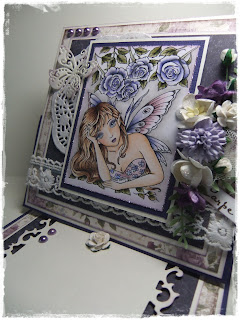 Siden jeg klarte, på siste finish, da jeg skulle lime på en blomst, tømte nesten HELE Panokitt-lim flaska utover kortet, så var det bare å kaste seg over et nytt..LOL (Jeg lo ikke da deet skjedde;DD)